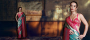 Clean lines, subtle work, and soothing tones define this chic saree range.